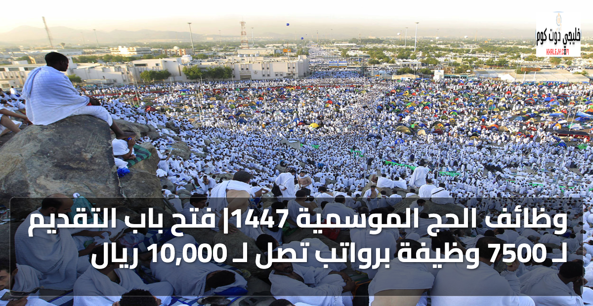 إليكم ملخص سريع لأبرز المعلومات حول وظائف موسمية الحج المطروحة حيث تم فتح باب التسجيل لشغل أكثر من 7500 وظيفة في مشروع إدارة الحشود بقطار المشاعر المقدسة لموسم حج 1447هـ وفقا للتفاصيل التالية:
