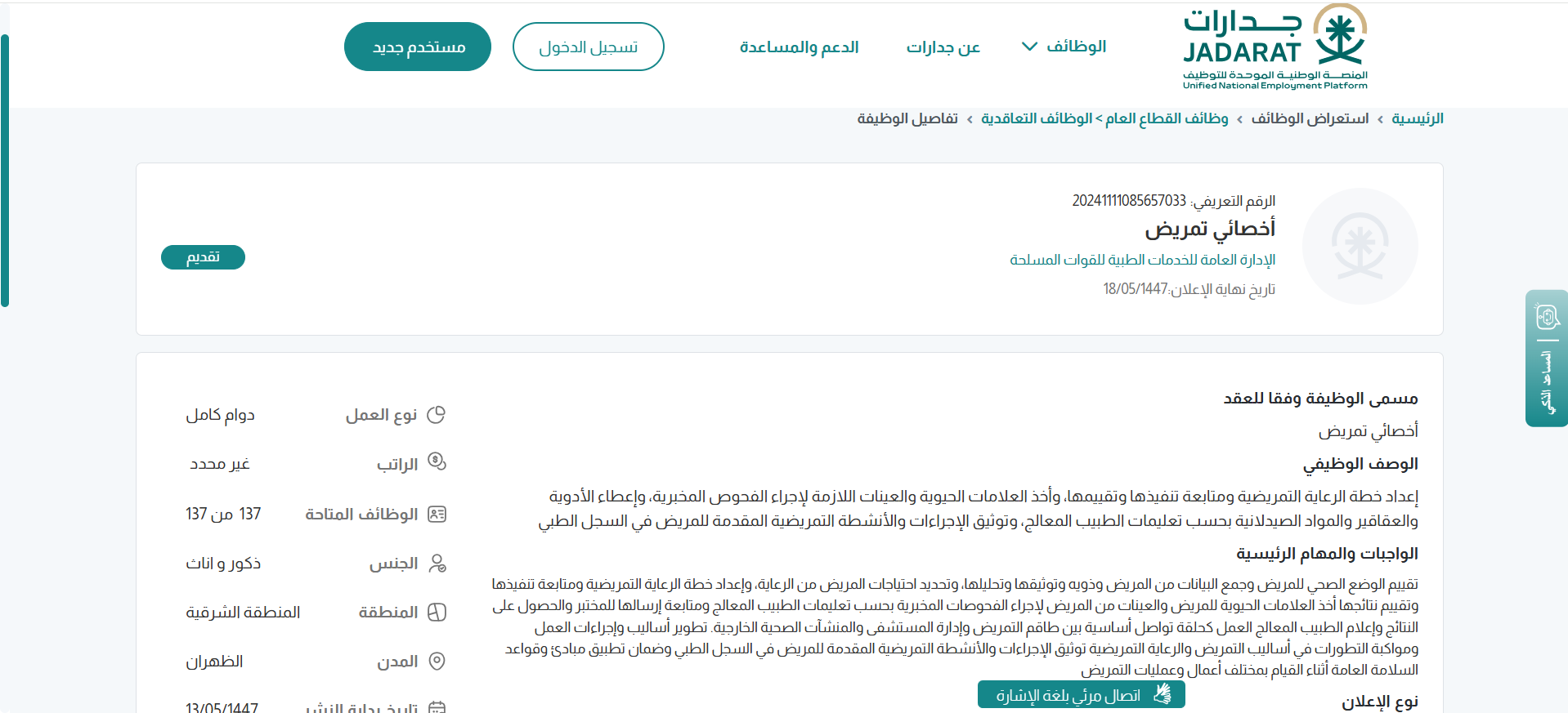 وظائف تمريض في السعودية لعام 2025 حيثما أعلنت عنها الإدارة العامة للخدمات الطبية للقوات المسلحة من خلال الموقع الرسمي وتعلن عن عدد 147 شاغرة للتوظيف العاجل لمن تنطبق عليه الشروط اللازمة.